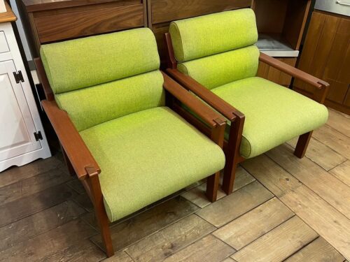 日田工芸のビンテージSOFAを入荷しました!チーク材・1P×2 セットで販売します。デッキコーナーにありますので、気になる方はぜひ見に来てくださいね。
